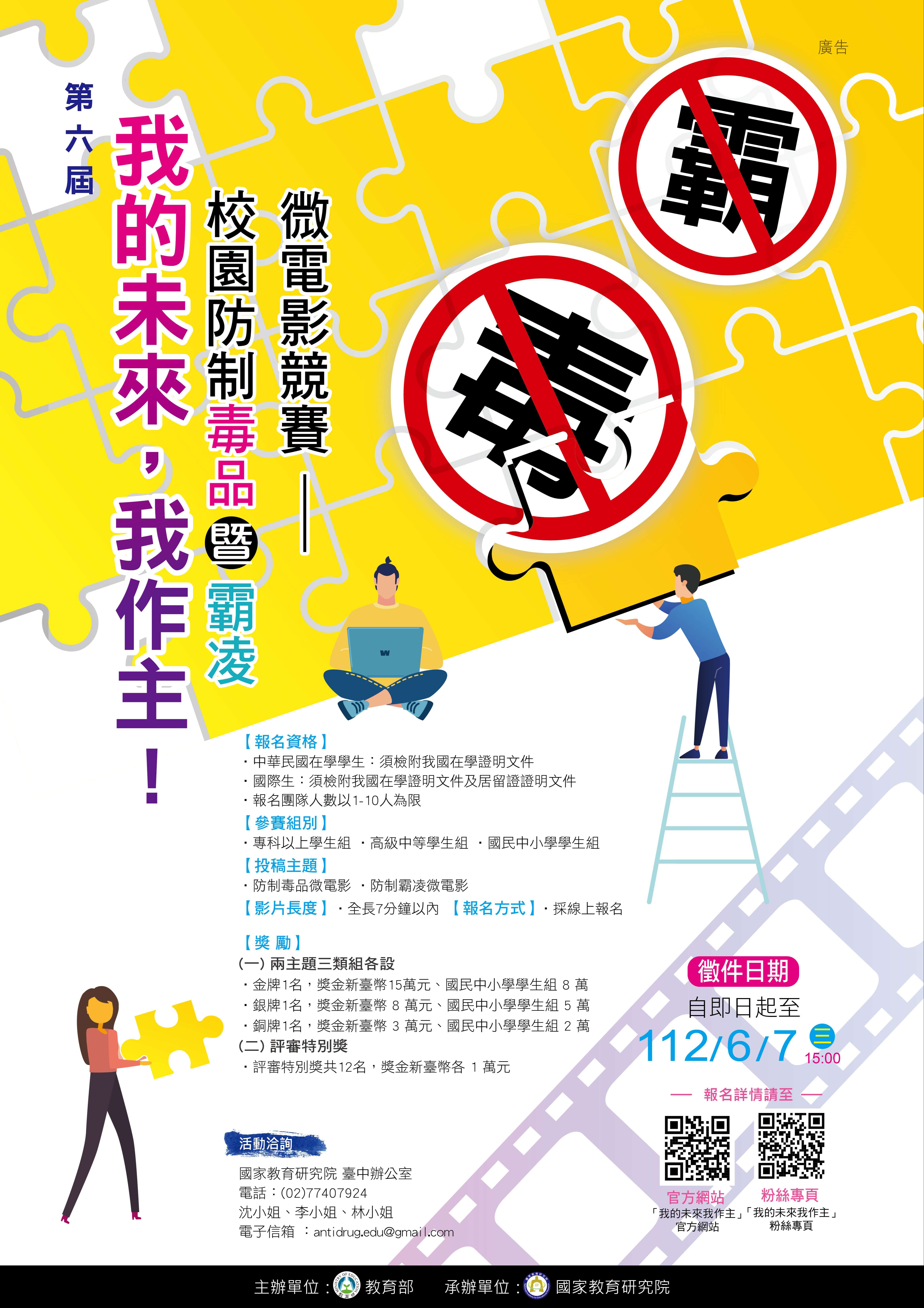 教育部第六屆「我的未來我做主」校園防制毒品暨霸凌微電影競賽活動