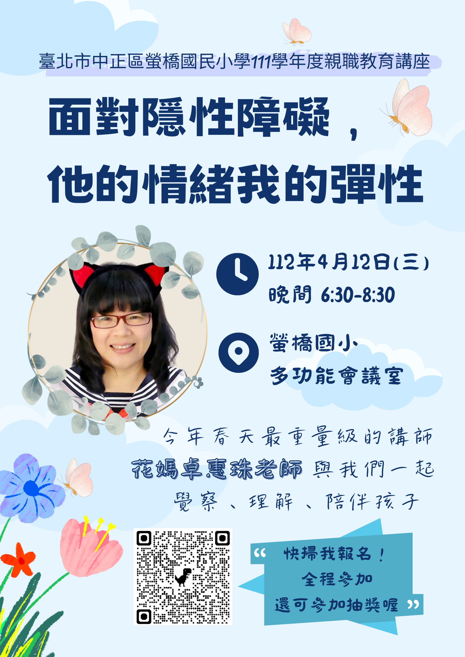 四、講師:卓惠珠(花媽) 五、講座地點:螢橋國小多功能會議室