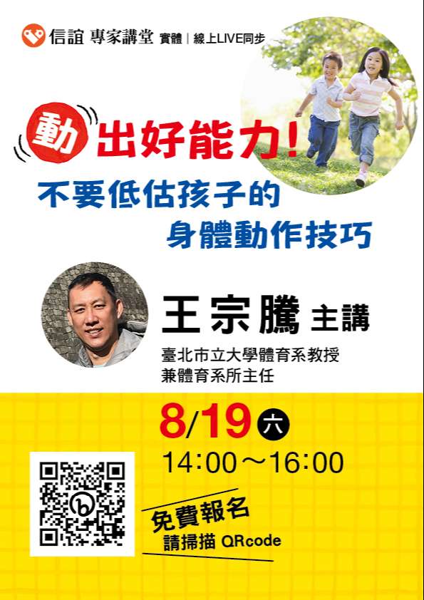 信誼基金會以此為題,於2023年8月19日(六)舉辦【「動」出好能力!不要低估孩子的身體動作技巧】講座,