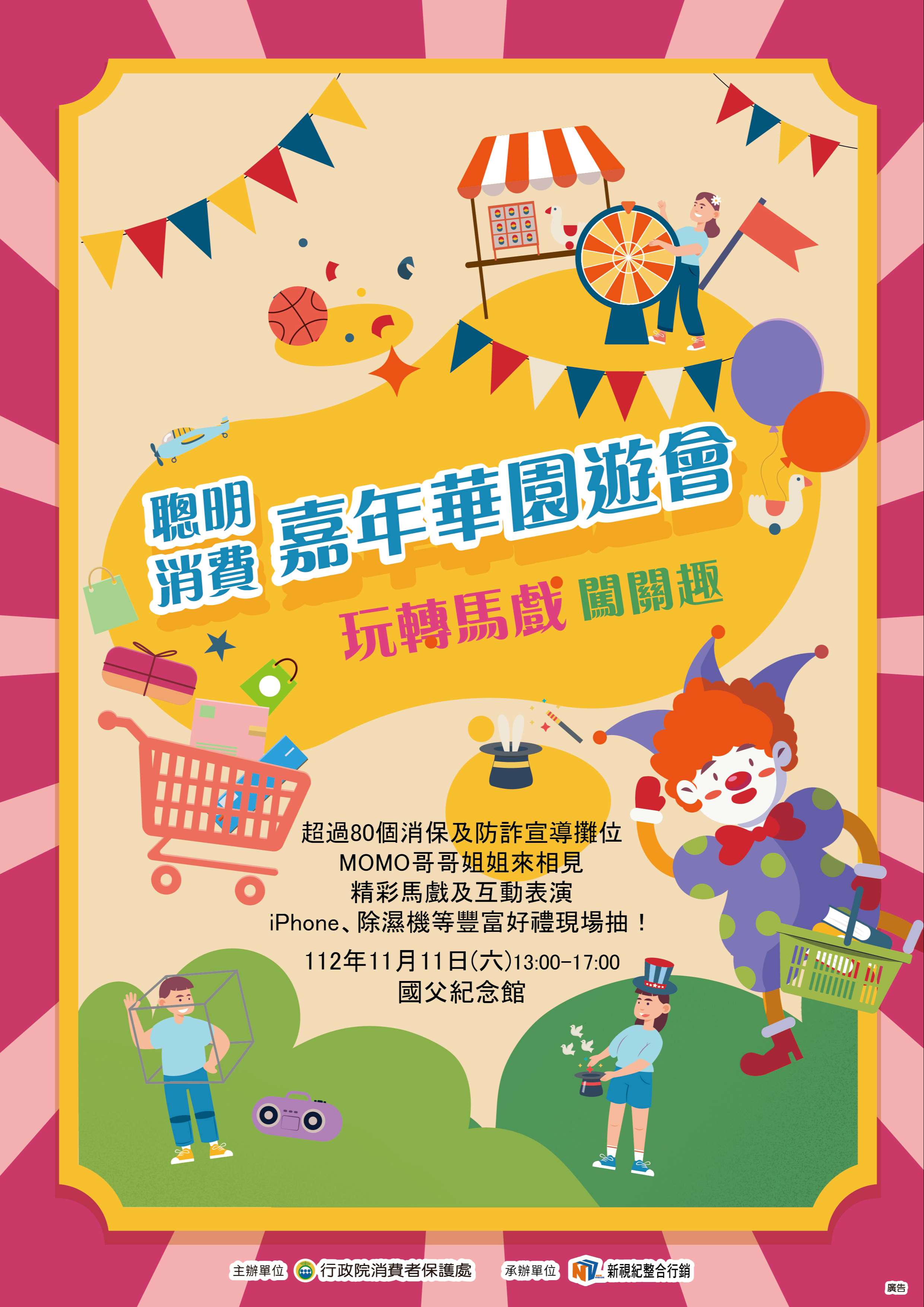 行政院消費者保護處舉辦「聰明消費嘉年華園遊會」活動,請踴躍參加。