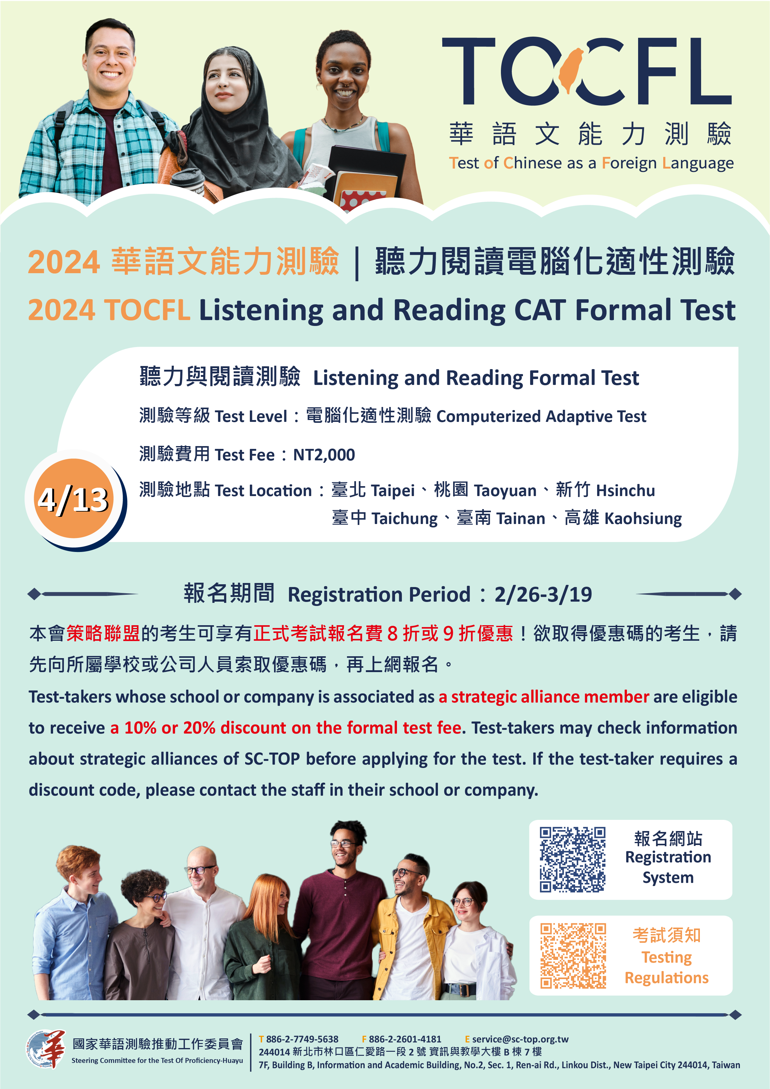 測驗日期:4月13日(星期六)。