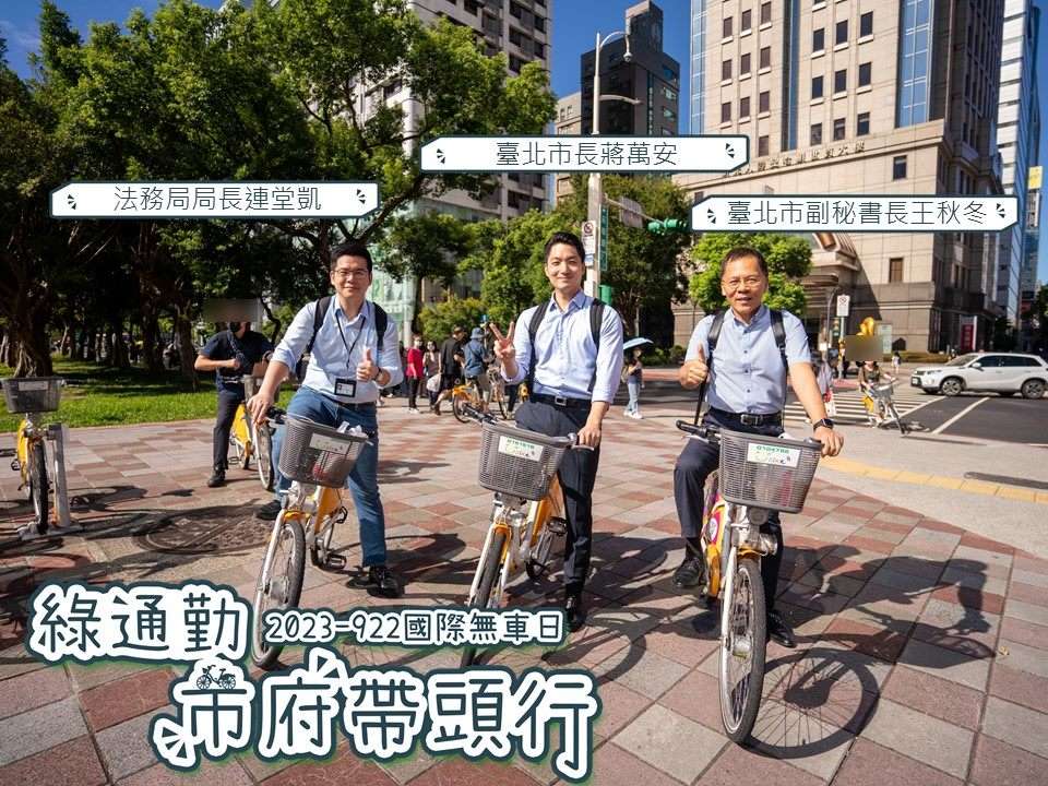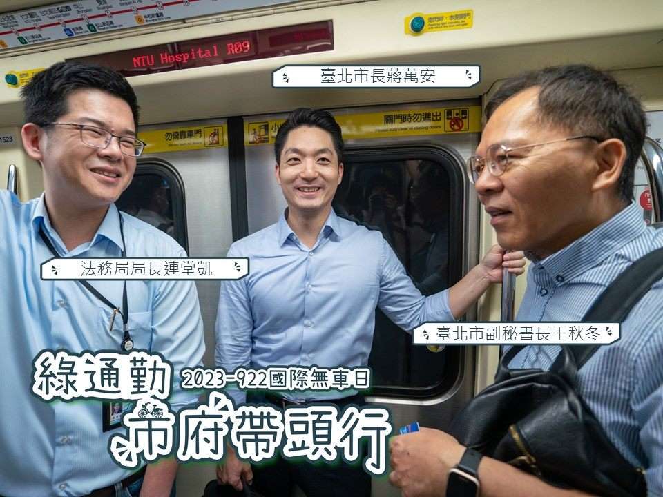臺北市政府為推廣綠運輸並響應9月22日「國際無車日」及9月20日「週五綠運輸」活動,市長將於9月20日使用綠運輸通勤,並邀請市府同仁於同日共同以綠運輸方式(捷運、公車、自行車或步行)通勤,響應國際無車日。