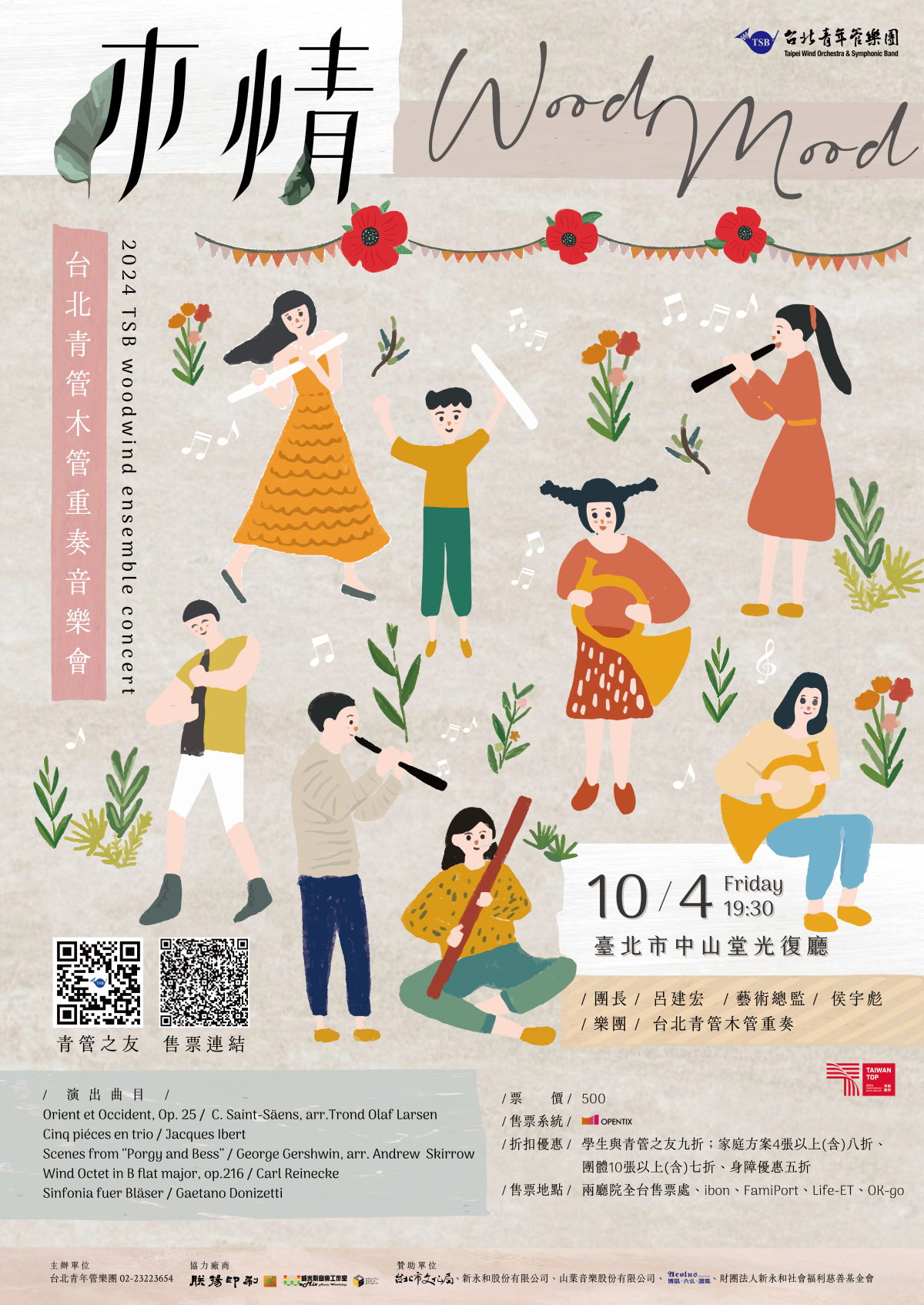 (三)購票與折扣優惠查詢請至兩廳院購票系統 ;相關問題請逕洽台北青 管樂團經理王先生(02-2322-3654)