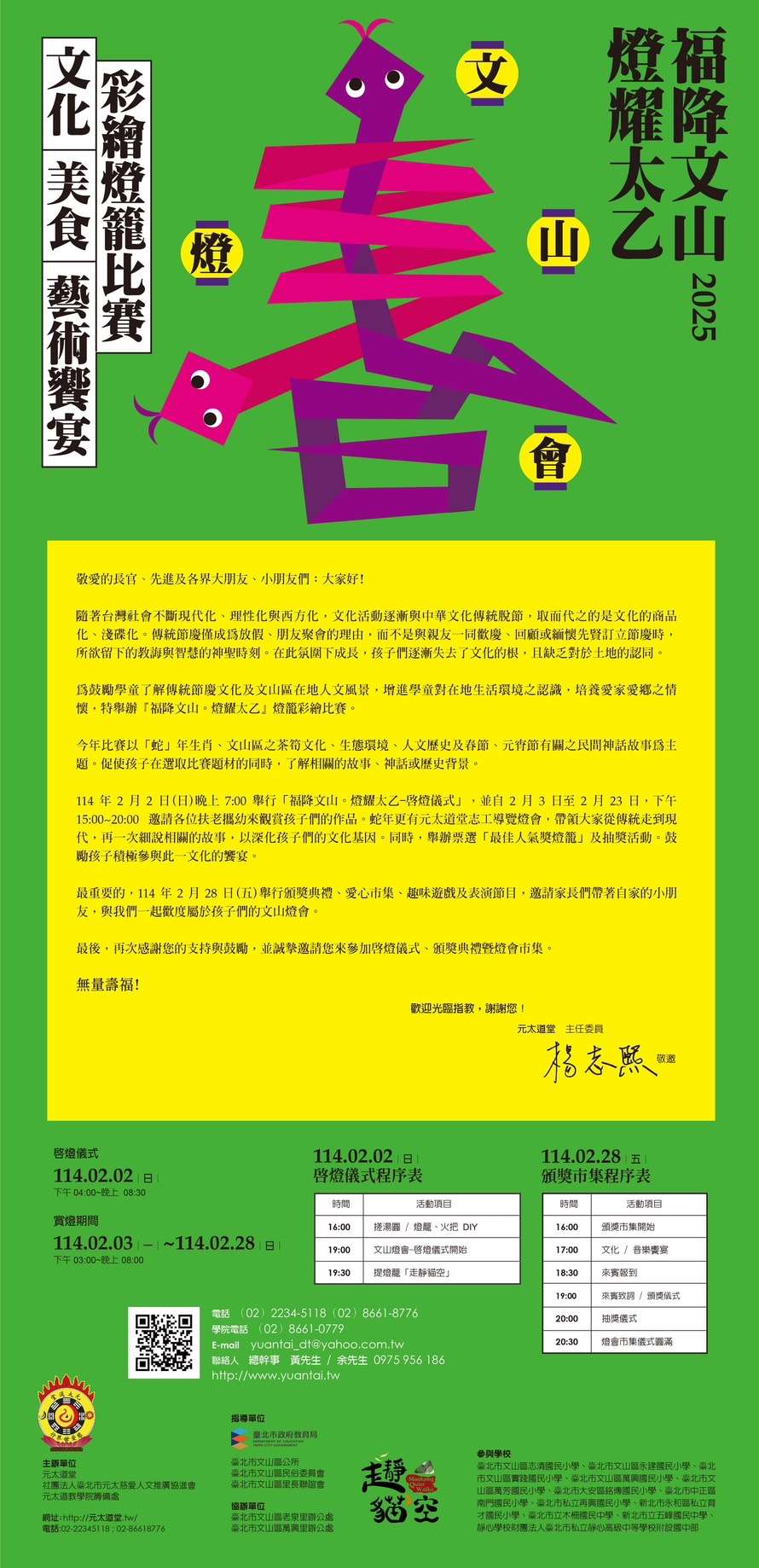 一、依據元太會字第11401090025號、北市教終字第1143035309號辦理。