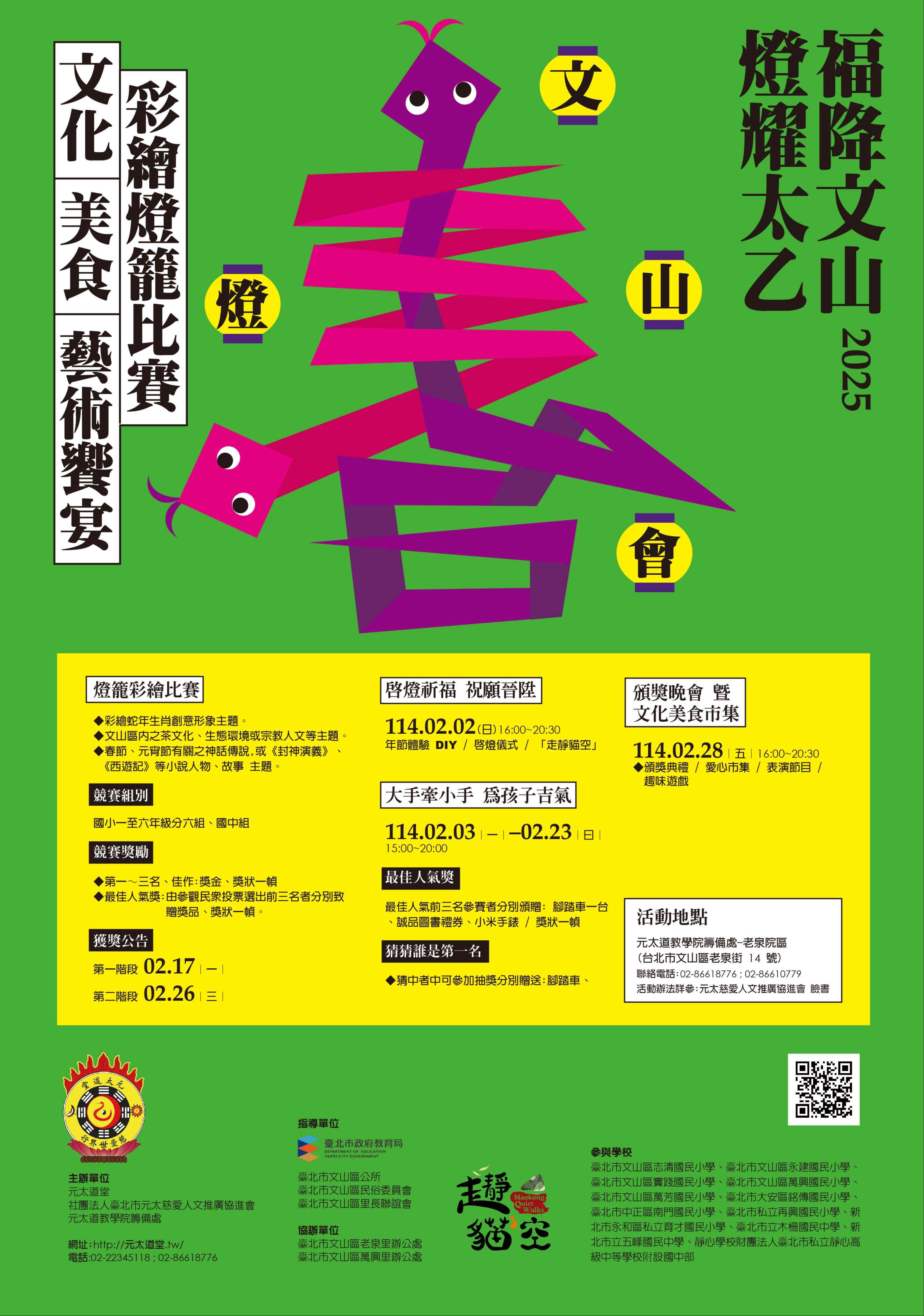 (一)點燈儀式:114年2月2日16時至18時,屆時將安排傳統元 宵燈節搓元宵、持火把、走靜貓空等活動。