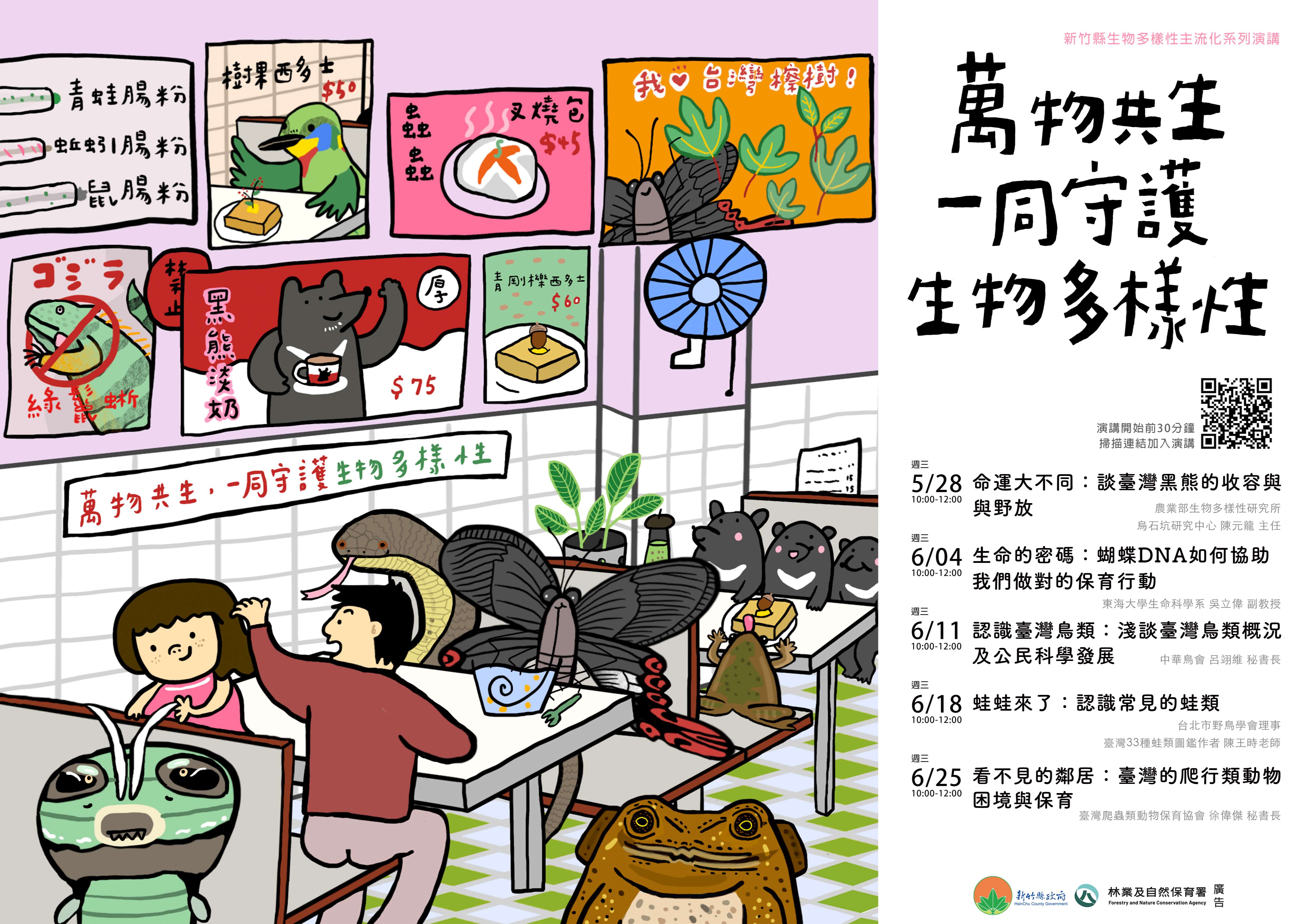 轉知新竹縣政府辦理之「新竹縣政府生物多樣性主流化系列線上演講」。