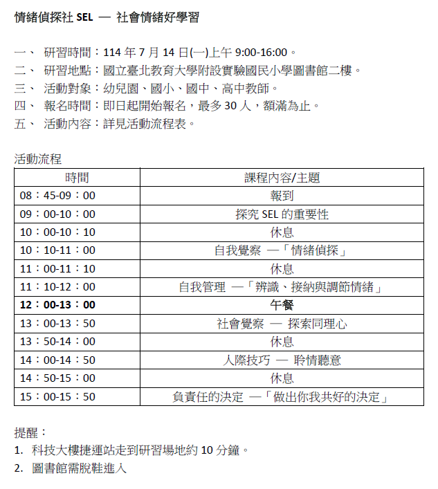 研習對象:臺北市高級中等以下學校(含公私立幼兒園、國小、國中及高中)對於本主題有興趣之教師可自由報名參加。