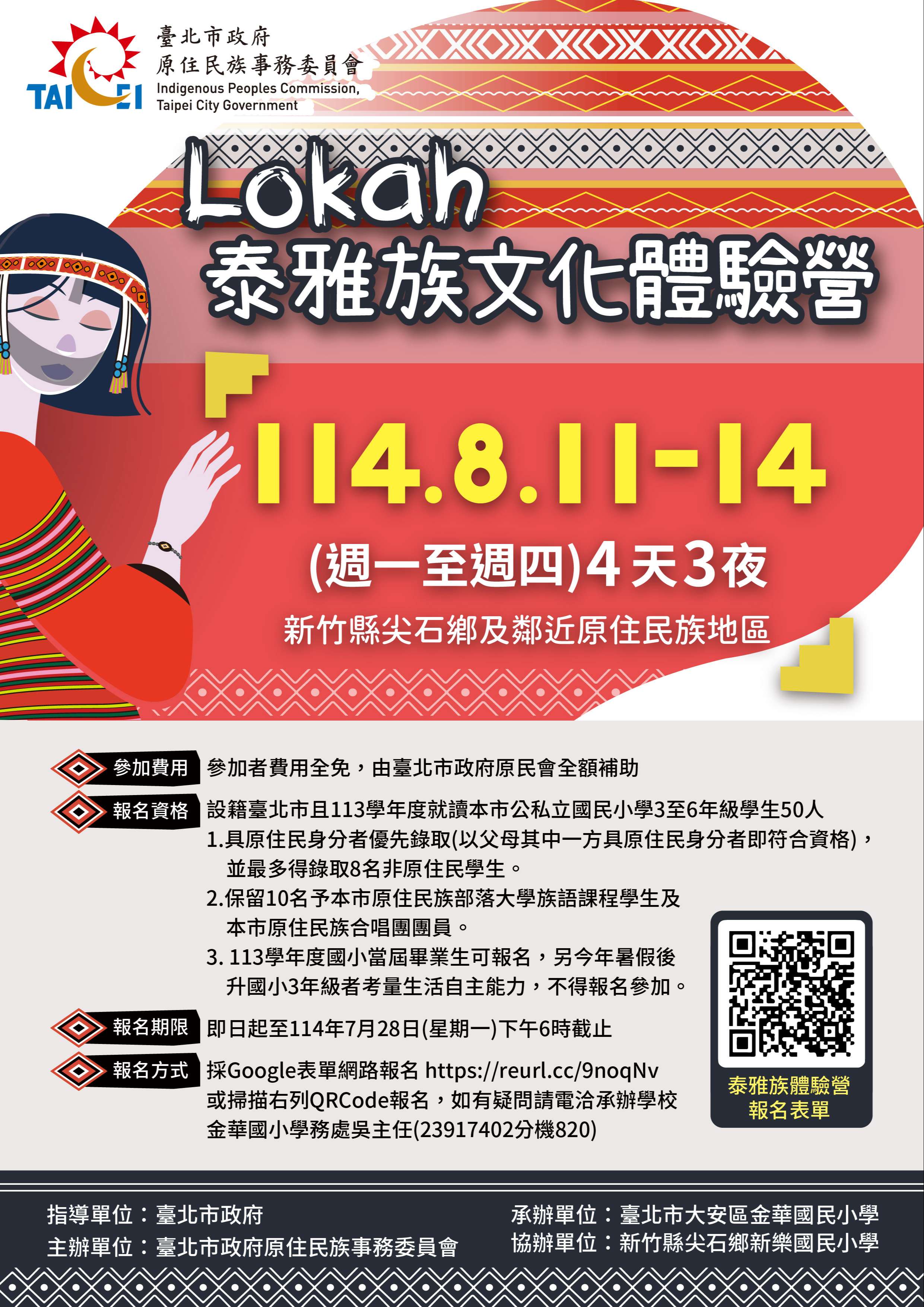 (五)報名網址:https://reurl.cc/9noqNv,報名如有疑問, 請電洽金華國小學務處吳主任(02-23917402轉820)。