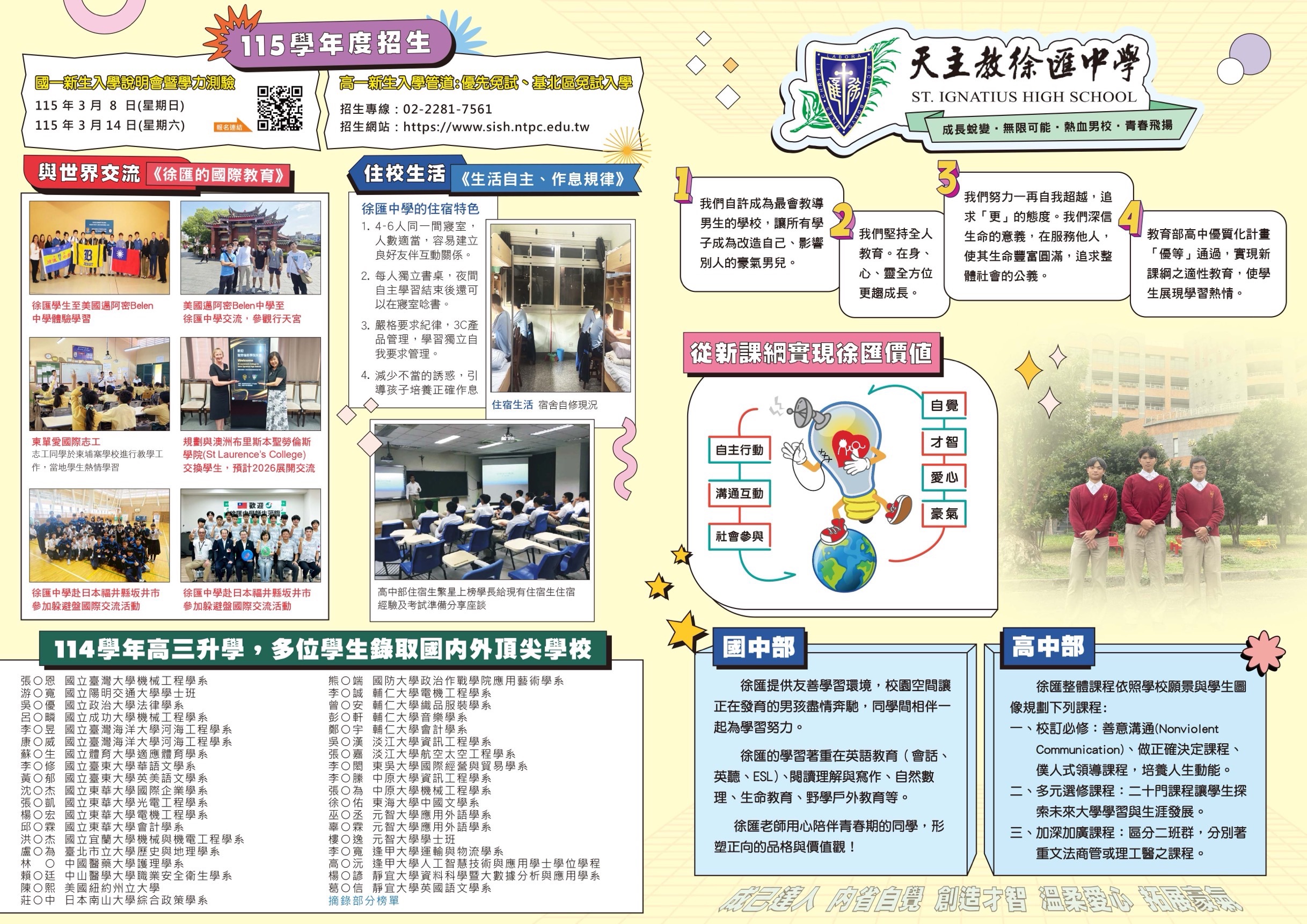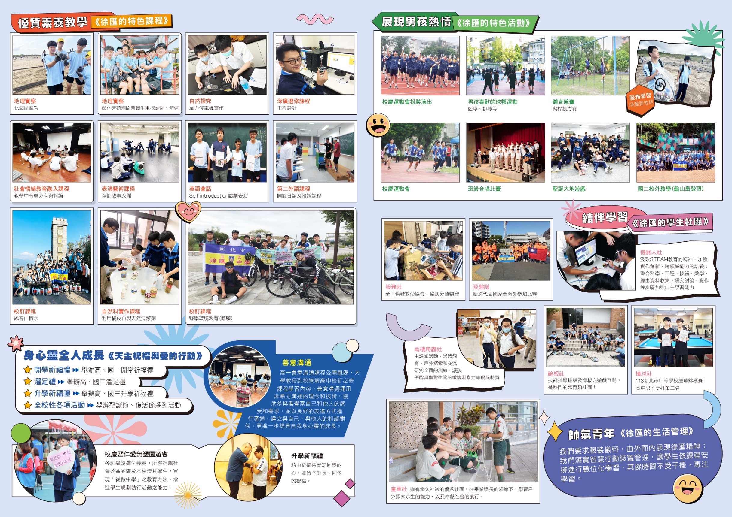 一、徐匯中學著重培育學生具備自覺、才智、愛心、豪氣四大能力,歡迎中高年級男生及家長參加新生說 明會。